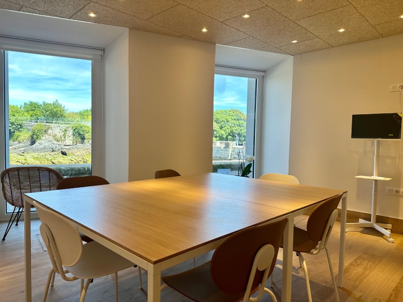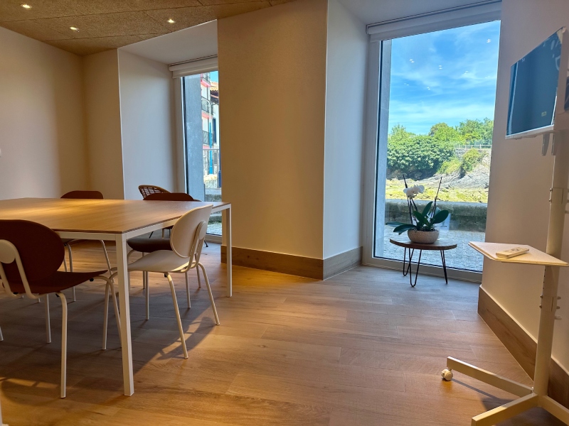 En Apartamentos MundakaPort, te ofrecemos mucho más que modernos apartamentos frente al puerto de Mundaka: ponemos a tu disposición espacios ideales para organizar pequeños eventos de empresa de hasta 15 personas en un entorno único. Situados en un edificio moderno con luz natural, vistas al mar y servicios completos incluyendo zona de spa y relax, cafetería y alojamiento para grupos somos la opción ideal para reuniones, presentaciones, talleres o encuentros corporativos que buscan calma, profesionalidad y un entorno inspirador en Urdaibai. Nuestros espacios se adaptan tanto a dinámicas formales como a actividades más creativas, con todo lo que necesitas para que tu evento sea un éxito.