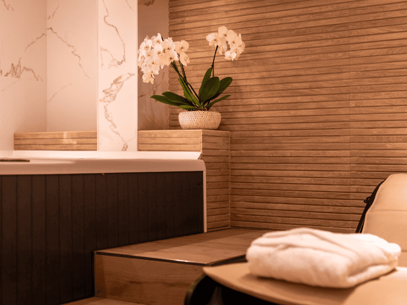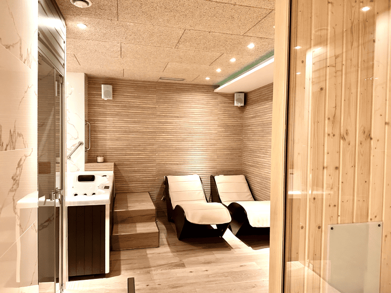 Disfruta de nuestra zona de spa & relax, un moderno espacio que se reserva de forma privada. El spa está completamente pensado para tu desconexión, relax y bienestar. Incluye bañera de hidromasaje, sauna, dos camas calefactables y duchas nebulizadoras.